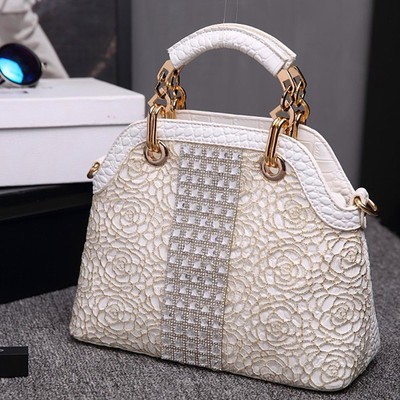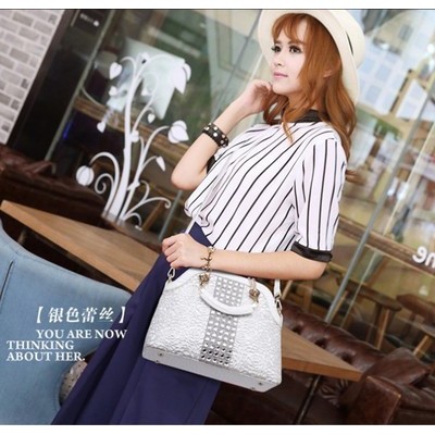 首页 > 鞋帽 / 箱包 / 钟表 / 奢侈品 > 潮流女包 > 手提包 > 新款真皮女包鳄鱼纹蕾丝镶钻女手提包单肩斜挎贝壳包女士包包